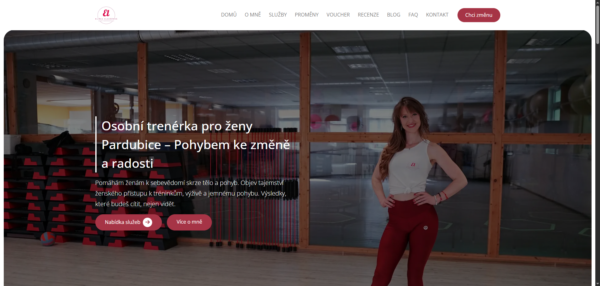 Firemní web pro fitness trenérku se zaměřením na ženy.