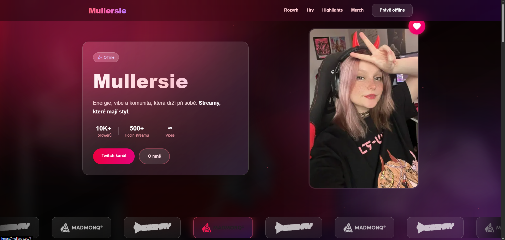 Webová aplikace pro streamerku s vlastním admin panelem pro správu her, článků a rozvrhu